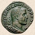 Marco Julio Filipo, nació en Trachonitide (cerca de la cuidad de Damasco) en la actual Siria y gobernó bajo el nombre de Filipo el Árabe, conocido también como Filipo I. Su padre, Julio Marino, era de ciudadanía romana y posiblemente fuera un personaje influyente en su comunidad. Alrededor del año 230, Filipo se casó con Marcia Otacilia con la que tuvo un hijo en el año 238, con el nombre de Marco Julio Severo Filipo. Ayudado por su hermano Julio Prisco, se distinguió en la campaña contra los persas, y en el año 243 fue nombrado jefe de la Guardia Pretoriana. Después de varias victorias del ejército romano contra el persa y tras la muerte de Timesiteo, llegó la desgracia para el ejército romano, que sucumbió en la batalla que tuvo lugar en Media. Tras ésta humillante derrota, durante el año 244 d.C., las tropas nombraron emperador a Marco Julio Filipo, quien a partir de ese momento, intentó hacer caer en desgracia al emperador Gordiano III, haciendo difundir rumores sobre su inexperiencia. En el año 244 d.C. las tropas al mando de Filipo asesinaron a Gordiano III, aunque llegó a Roma la noticia que Gordiano había muerto por enfermedad. Tras ciertas vacilaciones, el Senado nombró Augusto a Filipo, su esposa Marcia Otacilia recibió el título de Augusta y su hijo Marco Julio Severo Filipo, el de César. Después de su nombramiento, Filipo el Árabe divinizó a Gordiano III y envió sus cenizas a Roma. Tras el pago de un tributo y la renuncia de Armenia y Mesopotamia, firmó la paz con Sapor I, monarca de los persas, por lo que recibió los títulos de "Parthicus Maximus" y de "Persicus Maximus". Antes de dirigirse a Italia convirtió a su ciudad en la colonia Philipopolis y nombró a su hermano Julio Prisco, rector del Oriente. Durante el reinado de Filipo I, Prisco ejerció su suprema autoridad sobre las provincias en Oriente, desde sus cuarteles en Antioquía. En el 245 los carpios, hicieron incursiones al sur del Danubio y tras varias luchas, en el año 246, Filipo I intervino personalmente en la guerra logrando derrotarlos en el 247. Tras esta victoria, Filipo I se proclamó "Carpius Maximus" y celebró el triunfo en Roma. También proclamó Augusto a su hijo y le concedió el título de "Mater Augusti et Castrorum et Natus et Patriae" a su mujer Marcia. Como constructor, Filipo el Árabe embelleció Roma con edificios, restauró gran cantidad de calzadas en numerosas provincias, levantó un palacio sobre el Celio y creó el " lacus" en el Trastévere. Dictó unas 50 constituciones en su mayoría de carácter moral, y concedió una amnistía a los deportados y a los bandidos. Poco después, en diversas provincias surgieron pretendientes al trono. En el 248 d.C. las legiones de Oriente se sublevaron y nombraron a Pupieno como Augusto, pero rápidamente acabaron sometiéndose. En el Danubio, las legiones de Panonia y Moesia proclamaron emperador a T. Claudio Marino Pacatiano, de origen galo. En Oriente, Julio Prisco, hermano de Filipo I, elevó los impuestos provocando el gran descontento que desencadenó la proclamación de dos nuevos emperadores en Capadocia y Siria, Jotapiano en Capadocia y Julio Aurelio Sulpicio Uranio Antonino, sacerdote de Afrodita, en Siria. Jotapiano fue derrotado, pero U. Antonino continuó en el poder. Mientras, Filipo I mandó al Danubio a Quinto Trajano Decio, general panonio de de rango senatorial y con su llegada a la zona, las legiones asesinaron a Pacatiano y proclamaron emperador a T. Decio, quien se dirigió hacia Italia. Filipo I le salió al encuentro al frente de sus tropas, pero fue derrotado en las cercanías de Verona en el año 249 d.C. Filipo el Árabe murió en el transcurso de la lucha y su hijo Filipo, también fue capturado y asesinado por los pretorianos. Trajano Decio fue entonces reconocido como emperador por el Senado. |