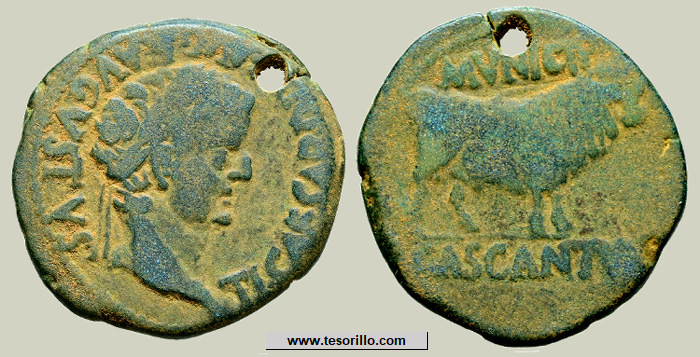 Corresponde a la moneda acuñada en Lugdunum (15-16 d.C.)
