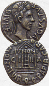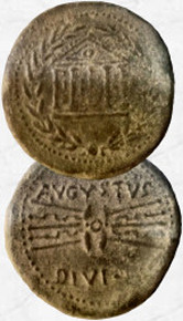5.- Reproducción de un dupondio de Emerita (Augusto, 25 a.C. - 14 d.C.).