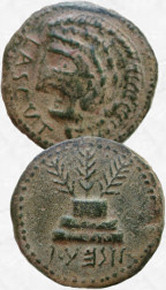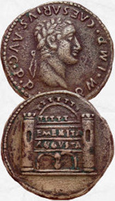 6.- Reproducción de un dupondio de Emerita (Tiberio, 14-37 d.C.).