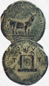 3.- Reproducción de un semis de Carthago Nova (Augusto, 27 a.C. - 14 d.C.).