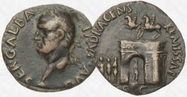 Nerón murió en junio del año 68 d.C. y Galba llegó a Roma en octubre, pero fue asesinado en enero del año siguiente, por lo que tuvo un reinado efímero, de tan solo unos meses. Cuesta creer que en tan corto periodo de tiempo pudieran construirse arcos triunfales a su nombre en Tarraco y también en Lugdunum (ver las monedas RIC I 77-84 y 134 mostradas más adelante). Más aún, teniendo en cuenta que las leyendas del reverso de estas monedas (tanto las de Tarraco como las de Lugdunum) coinciden en aludir a una rebaja de impuestos (QVADRAGENS / XXXX REMISSA), entendemos que las imágenes de arcos triunfales no concuerdan con dichas leyendas y representan más bien un deseo (tal vez Galba proyectaba dichas construcciones) que una realidad. La falta de vestigios arqueológicos en ambas ciudades parece corroborar que estos arcos fueron realmente un simple motivo propagandístico.