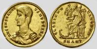Este busto presenta la particularidad de parecerse mucho al de Constancio II, cabe la posibilidad de que utilizaran un cuño del emperador y lo retocaran, ya que parecen