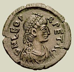 Pequeña moneda de bronce acuñada entre los años 457-474 en