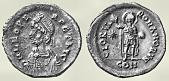 Pequeña moneda de bronce acuñada entre los años 457-474, en