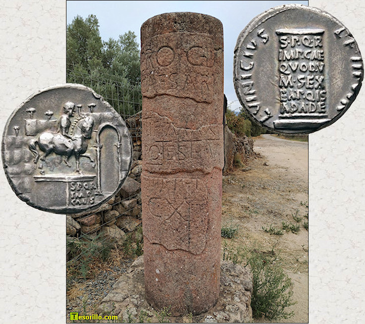 Miliario de Nerón del año 58 erigido actualmente a la salida del antiguo municipio romano de Capera (Cáparra, Cáceres, España) a 110 millas romanas de