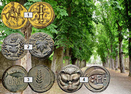 Estas cuatro monedas son muy antiguas, están datadas entre los siglos V a.C. y I