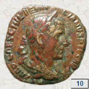 10.- Sestercio de Treboniano Galo manipulado (retocado y repatinado) para que parezca