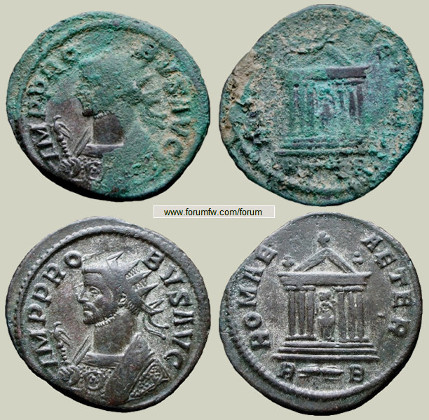 un antoniniano de Probo procedente del foro de "Monnaies de l'Antiquité",