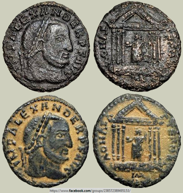 del raro follis del usurpador Alejandro (Cartago, 308-311 d.C.) que figura a