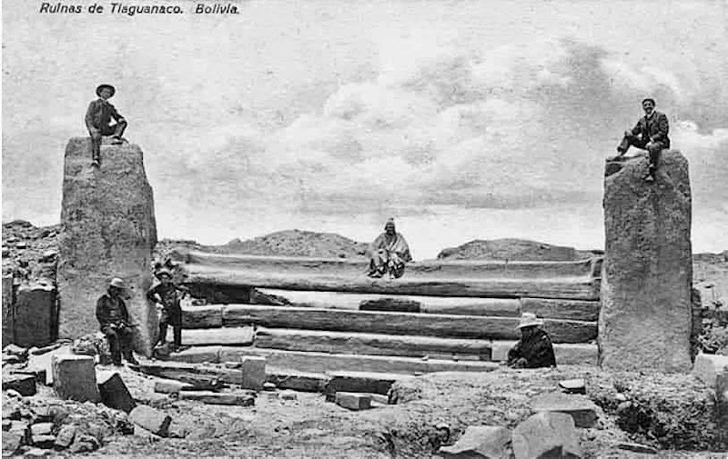 Izquierda: Ruinas de Tiahuanaco a principios del siglo XX (cercanías de La Paz, Bolivia).