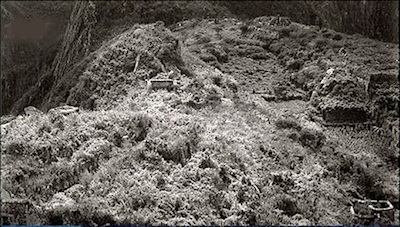 Izquierda: Fotografía de 1915 de las ruinas de Machu Picchu (Perú).