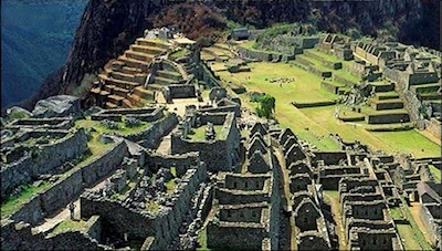 Derecha: Fotografía actual (2020) del sitio arqueológico de Machu Picchu (Perú).
