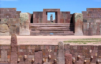Derecha: Aspecto actual del sitio arqueológico de Tiwanaku (cercanías de La Paz, Bolivia) |