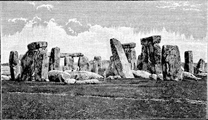 Izquierda: Grabado del siglo XIX del monumento megalítico de Stonehenge (Reino