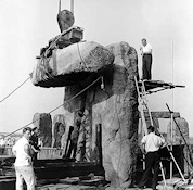 Centro: Labores de reconstrucción del crómlech de Stonehenge.