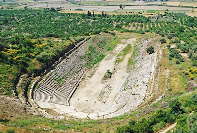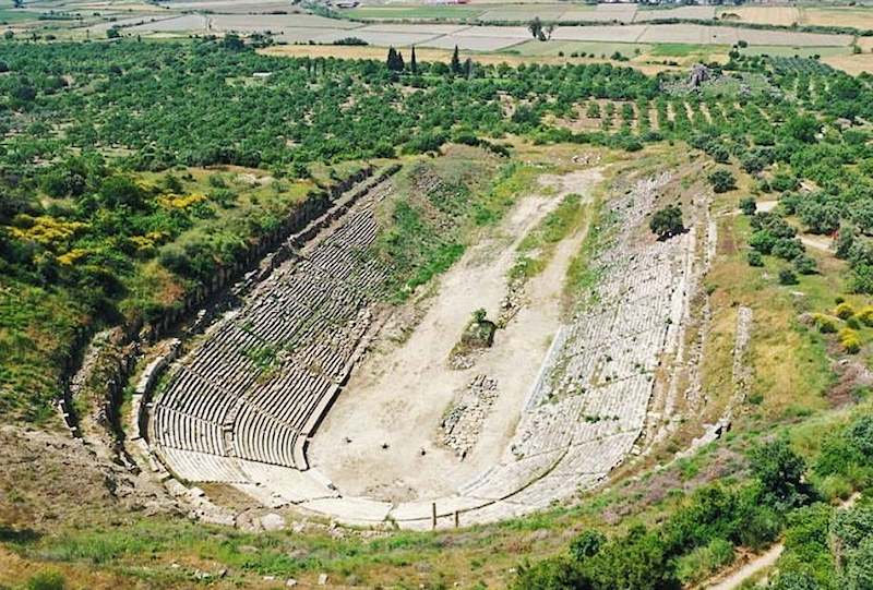 Aspecto del estadio griego de "Magnesia ad Maeandrum" (Turquía) antes y