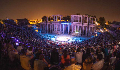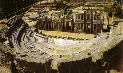 actual del teatro romano de Mérida, ya reconstruido. La primera representación teatral de la época moderna tuvo lugar en 1933.