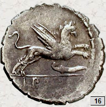 republicano de la familia Papia (moneda nº 16), con el grifo y el símbolo
