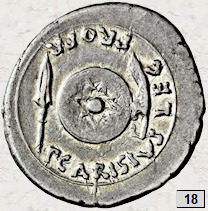 - Escudo redondo y dos lanzas verticales, describe RIC I 20.
