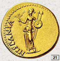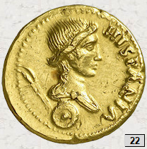 áureos (monedas nº 21 y 22) se acuñaron durante las Guerras Civiles del 68 d.C. por Galba,