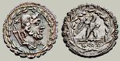 Moneda de plata acuñada en Roma (139 a.C.) por Marcus Aurelius Cotta.