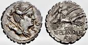 Moneda de plata acuñada en Roma (111-110 a.C.) por los triunviros monetarios: