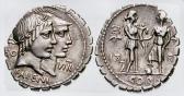 con casco de la Virtud (Virtus), ambas mirando hacia la derecha.