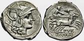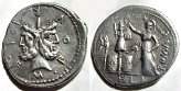 Moneda de plata acuñada en Roma (119 a.C.) por Marcus Furius L.f. Philus.