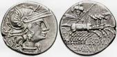 Moneda de plata acuñada en Roma (135 a.C.) por el magistrado monetario Caius Minucius Augurinus.