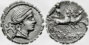 numismática republicana, sólo aparece en las monedas de Mallia/Claudia y en Naevia. La triga era utilizada por los romanos como carro de combate y