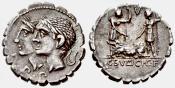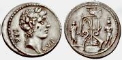Familia patricia, con ramas plebeyas. Originarios de Lanuvium, llegaron a Roma en tiempos de los reyes, alcanzando pronto las más altas magistraturas. El cónsul S. Sulpicius, que logró descubrir una conspiración contra el rey Tarquino, fue el primer miembro conocido de esta gens. Cientos de años más tarde, ya en tiempos imperiales, en el seno de la familia Sulpicia nació S. Sulpicius Galba, el gobernador de la Hispania Tarraconense que se rebeló contra Nerón y llegó a ser emperador durante el infausto año de 69 d.C. Sus magistrados monetarios acuñaron tanto en oro como plata y bronce, recordando tanto las leyendas de su ciudad natal (los dioses Penates se le aparecieron a Eneas y le encargaron la fundación de Lanuvium), como las hazañas de sus antepasados. |