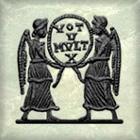 Victorias sosteniendo una corona con inscripción votiva, a veces sobre