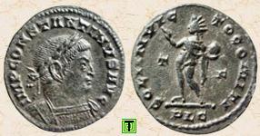 Periodo IV En los primeros años del siglo III la amonedación imperial dependía en gran manera de Roma y Antiochia, de manera que cuando a Galieno se le confió el gobierno de las provincias occidentales (fue asociado al poder por su padre, Valeriano I), no dudó en reabrir la antigua ceca de Lugdunum. La ceca emitió casi ininterrumpidamente series en plata y bronce, a pesar de caer en manos de Póstumo y de otros usurpadores del llamado "Imperio Galo", hasta que los hijos de Constantino Magno, con la reanudación de las acuñaciones en oro, la devolvieran a su antiguo esplendor. En tiempos de Honorio (alrededor del 418) la ceca fue clausurada definitivamente. Con la reforma de Diocleciano se generalizó la costumbre de utilizar marcas de oficina para cada ceca y por ello sabemos que Lugdunum tenía dos oficinas entre 294-303, una entre 303-330 y de nuevo dos a partir de entonces.