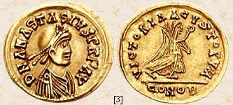 Después del Imperio Romano de Occidente Conquistado Occidente por los pueblos bárbaros a finales del siglo V, la ciudad de Lugdunum cayó en manos de burgundios y francos, quienes comenzarían acuñando moneda a nombre del correspondiente Emperador de Oriente, para finalizar emitiendo la suya propia. [3] Tremis / Lugdunum / Godegiselo (Classical Numismatic Group) |