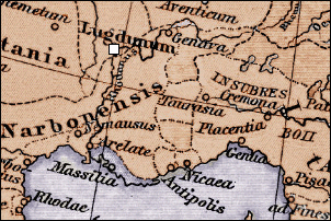 Situada en un área de la Galiae ampliamente romanizada, la colonia Copia Felix Munatia Lugdunum fue elegida como ceca Imperial por Augusto (15 a.C.), llegando a ser la segunda ceca en importancia del Imperio, superada solo por la propia Roma. Lugdunum fue cerrada y reabierta en varias ocasiones, hasta que los hijos de Constantino devolvieron a la ceca su antiguo esplendor con la reanudación de las acuñaciones en oro. En tiempos de Honorio (418) la ceca fue clausurada definitivamente. Los restos arqueológicos de la antigua capital de la Gallia Lugdunensis, se encuentran en la actual ciudad de Lyon (Francia). |