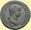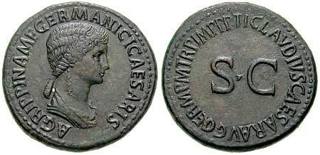 Agripina era hija del general Agripa y Julia (la hija de Octavio Augusto). Contrajo matrimonio con el joven Germánico sobre el año 5 a.C., poco antes, Germánico había sido designado el sucesor de Tiberio, pero su temprana muerte le impidió el ascenso al trono. Agripina acompañó a su marido en todas sus campañas orientales y cuando Germánico murió en Antioquía, regresó a Roma donde se vio involucrada en la oposición hacia el todopoderoso prefecto pretoriano Sejano. Tiberio no la apoyó, más bien recelaba de ella por las extrañas circunstancias acaecidas en la muerte de su marido, así que finalmente, fue deportada a la isla de Pandataria en el 29 d.C., en donde moriría de inanición, cuatro años después. Su matrimonio fue fecundo, tuvieron 9 hijos entre los que sobresalen: Nerón Julio César, Druso Julio César, Cayo Julio César Germánico y Agripina la Menor. Al morir Tiberio, ascendió al trono uno de los hijos de Agripina, Cayo Julio César, el cual sería conocido como "Calígula". Agripina la Menor (otra de sus hijas), sería posteriormente la madre del futuro emperador Nerón.