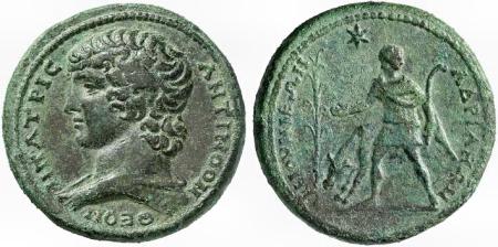 Anverso: ANTINOOV HPWOC. Busto de Antinoo hacia la izquierda.