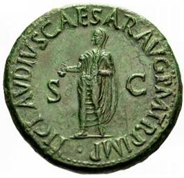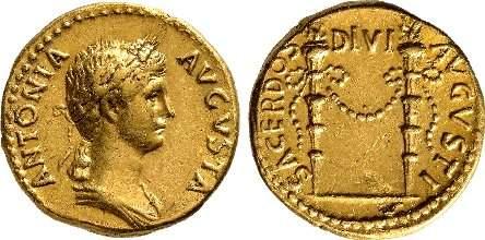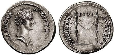 oficial acuñada en Lugdunum por Claudio, en honor a su fallecida madre