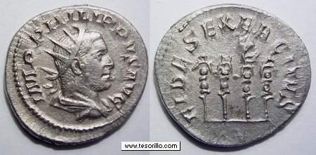 La leyenda AEQVITAS AVG resulta inusual ya que Filipo I nunca gobernó sin