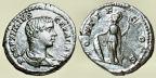 ofreciendo su mano derecha a Geta, quien a su vez le extiende la suya, mientras porta cornucopia en