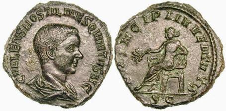 Cayo Valente Hostiliano Mesio Quinto, fue el hijo menor del emperador Trajano Decio y su esposa, Herenia Etruscilla y fue proclamado emperador durante el año 251 d.C. Junto con su hermano Herenio Etrusco, fue nombrado César en el año 249- 250 d.C. y permaneció gobernando como César en Roma, mientras el emperador y Herenio luchaban en el Danubio, contra la invasión de los pueblos godos. En la batalla de Abricio (251 d.C. en Tracia), la tropas romanas fueron derrotadas por el rey godo Cniva y murieron tanto Trajano Decio como Herenio Etrusco. Entonces Valente Liciniano se proclamó emperador en Roma, aunque fue rápidamente eliminado. Los soldados aclamaron como emperador a Cayo Vibio Treboniano Galo, pero el Senado proclamó emperador a Hostiliano. Al final, ambos aceptaron cogobernar conjuntamente. Ese mismo año 251 d.C., una terrible epidemia de peste, de las que asolaban periódicamente el Imperio, acabó tempranamente con la vida del emperador Hostiliano. Sin embargo, muchos romanos culparon erróneamente (?) a Treboniano Galo, de la muerte del joven emperador.