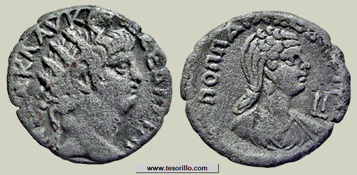 Busto de la emperatriz Popea, hacia la derecha. LI en el