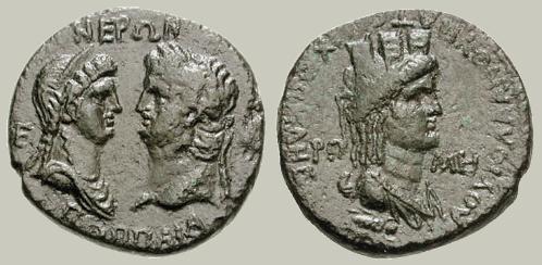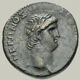 Anverso: (NEPΩ) KΛAV K-AIΣ ΣEB (ΓEP AV)