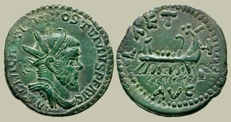 Marco Casianio Latinio Póstumo, fue el primer emperador del llamado "Imperio Galo" y gobernó aproximadamente entre los años 259-260 y 269 d.C. Gobernando en Oriente Valeriano I y en Occidente, su hijo Galieno, los francos aprovecharon la situación caótica del Imperio y entre los años 258 - 260 d.C., ocuparon Bélgica, penetraron en Hispania, ocuparon Tarraco y vivieron en la península Ibérica casi 12 años, pasando finalmente al norte de África, a Mauritania Tingitana. Durante el año 259 d.C., Salonino -César, hijo de Galieno- al mando de las tropas de Rin afincadas en Colonia, intentó someter a Póstumo pero los alamanes y francos aprovecharon estas luchas para penetrar en la Galia. Póstumo se rebeló, tomó el cuartel general de Salonino en Colonia y sus tropas ejecutaron a Salonino y a su preceptor, Silvano, proclamándole emperador. Póstumo llego a controlar toda la Galia, parte de Germania, Britania e Hispania y aunque el emperador de Occidente Galieno, trató de combatirle, en realidad prestaba más atención a los sucesos del Este de Imperio y no consiguió nunca recuperar la Galia. Póstumo asoció a su hijo al poder, nombrándole César y Augusto y consiguió rechazar a los invasores del Imperio más allá del Rin, construyendo fortificaciones y manteniendo unidos unos territorios, que Galieno difícilmente habría conservado. Más adelante, en el año 267 se llegó a un acuerdo entre Póstumo y Galieno y se delimitaron las áreas de control de ambos, dividiéndose de hecho el Imperio en 3 partes. En el año 268 se rebeló el gobernador de la Baja Germania, Leliano. Las tropas de Póstumo, sofocaron la rebelión sitiando y tomaron la ciudad de Maguncia, pero Póstumo prohibió su saqueo y fue asesinado por ello -junto con su hijo Póstumo- por sus propios soldados, que proclamaron emperador a Marco Aurelio Mario. Mario no duraría mucho tiempo, pues a los pocos días fue asesinado por las tropas, sucediéndole Victorino, un fiel soldado de Póstumo.