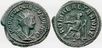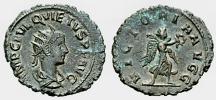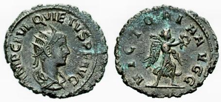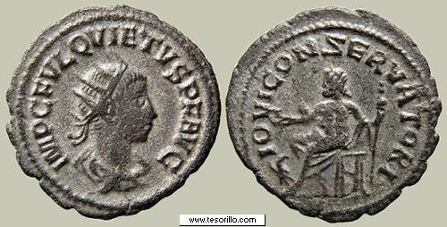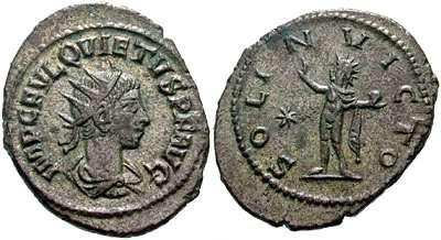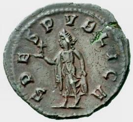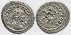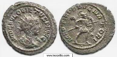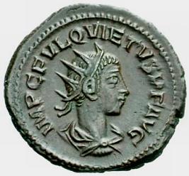 Busto con corona radiada del usurpador, mirando hacia la derecha.