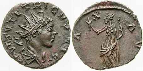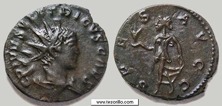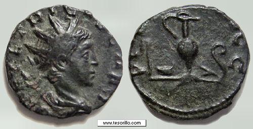 de este periodo. La teoría de Marcus Weder (Münzen und Münzstätten der Gallisch-Römischen Kaiser, Teil I SNR 76, 1997 & Teil II, SNR 77, 1998) indica que durante el reinado de Póstumo había una sola ceca en Colonia, abierta en 260 a.C. Una segunda ceca, posiblemente localizada en Trier, funcionaría durante los periodos de Mario y Victorino (269-271 d.C.), siendo ambas reunificadas durante Domiciano II (271 d.C.) en un lugar indeterminado del sur de la Galia. E. Besly, R. Bland y E. Burnett (The Cunetio Treasure - Roman Coinage of the Third Century AD, BM 1983) difieren en algunos puntos. La ceca de Trier funcionaría durante todo el reinado de Póstumo, abriéndose otra en Colonia al final del mismo, perdurando la situación hasta que al final del reinado de Tétrico I fueran reunificadas de nuevo en una localización desconocida. N. Parisot, M. Prieur y M. Smhmitt (L'Empire Gaulois. Les antoniniens (260-274 après J.-C.), CGF 2011), siguiendo las emisiones propuestas por Mairat (2004) creen que la ceca principal es Trier (siete emisiones), teniendo Colonia una emisión dividida en dos fases 268-9 d. C. Más información en: The Coinage of the Gallic Empire y Guide to main types. |