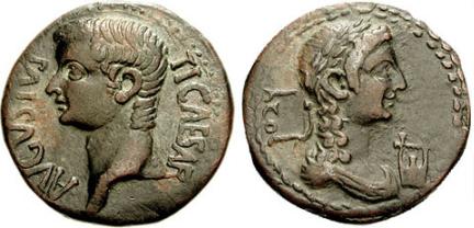 Corresponde a la moneda acuñada en Lugdunum (15-16 d.C.)