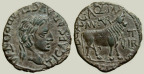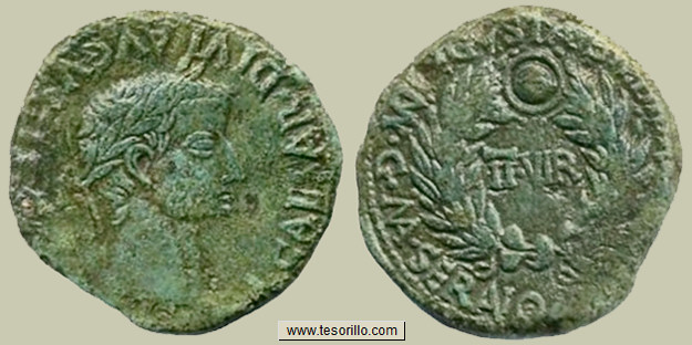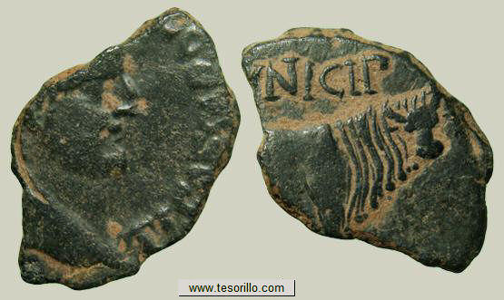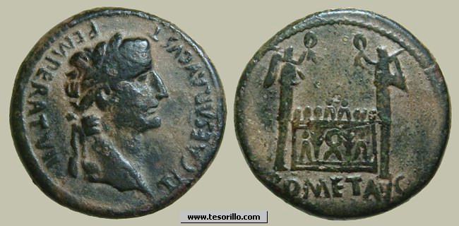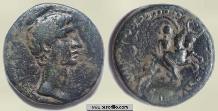 Anverso: TIBЄPIOY (Tiberius) KAICAPOC (Caesar)