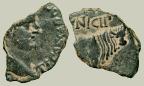 Moneda con leyendas en griego emitida en Judea en tiempos del